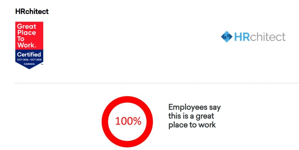 The accolade is based on direct feedback from employees of the hundreds of organizations surveyed by Great Place to Work. To be eligible for this list, organizations must be Great Place to Work- Certified™ and have exceptionally high scores from employees on the Trust Index survey. The prestigious award is based entirely on what current employees say about their experience working at HRchitect. This year, 100% of HRchitect employees in Canada reported that it’s a Great Place To Work®, compared to a national average of 57%.